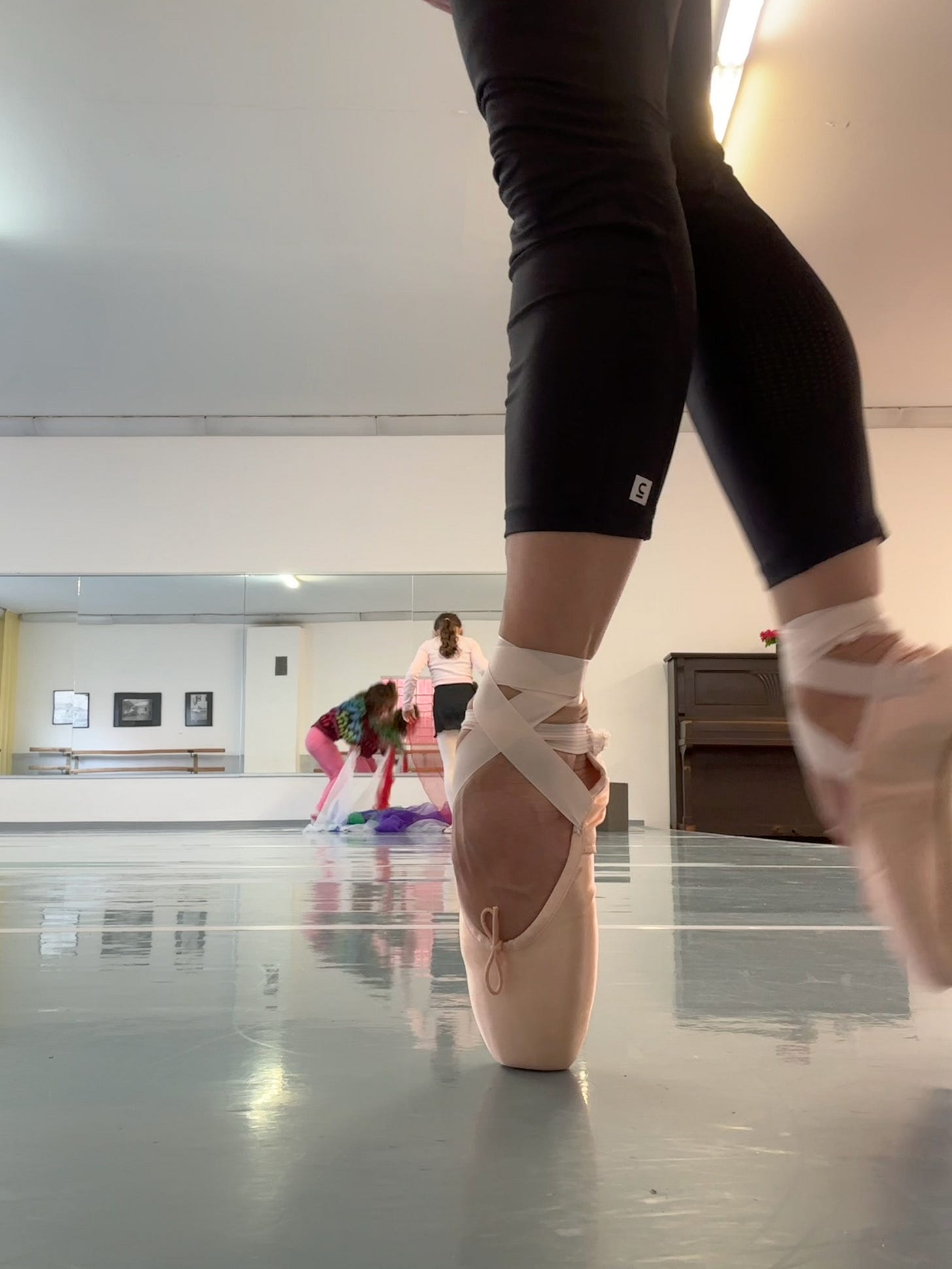 Once I was home, I used the shoes to demonstrate the correct way to roll up and down to my beginning pointe students. But after a week or two I was reminded of the fun I’d had dancing on pointe. I could imagine not just demonstrating pointe exercises at the barre but actually taking flight, dancing in the shoes. And so I challenged myself to find out if I could do it.